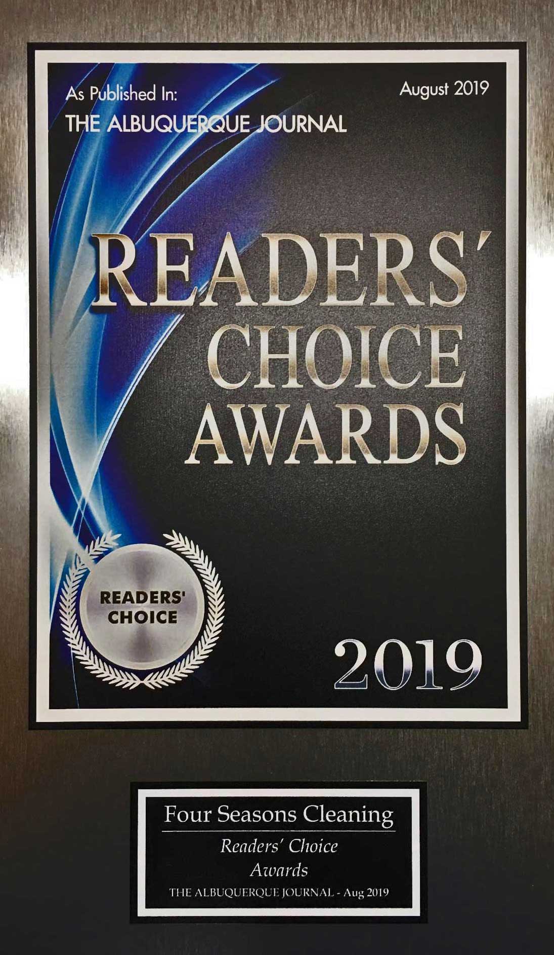 The people have spoken again! Four Seasons Cleaning has won the Readers' Choice Award for 2019 from the Albuquerque Journal. That's two years in a row! The Best of The Best. Congratulations!